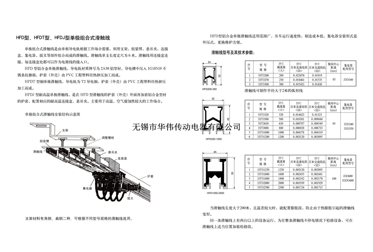 滑觸線由導(dǎo)軌、護(hù)套、 集電器、吊掛器、連接器、固定夾、端蓋等組成,根據(jù)用戶要求也可配置膨脹段(熱補(bǔ)償裝置)、檢修段(隔離器)等。